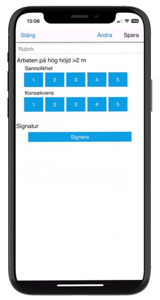 I ett framtida skede kan ni också aktivera riskanalyser på arbetsordern, därigenom får utföraren innan påbörjat arbete svara på frågor huruvida det finns risk för exv. hög höjd, slutna utrymmen eller heta arbeten.