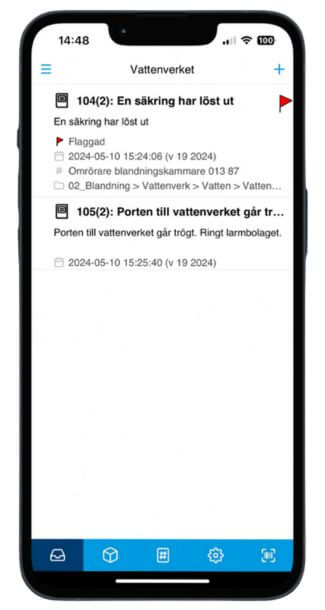 Logga drifthändelser direkt i appen. Följ upp händelserna med felanmälan och arbetsorder eller avsluta händelserna. Ni kan ha flera loggböcker i appen vilket är väldigt praktiskt när ni har olika anläggningar och processer.